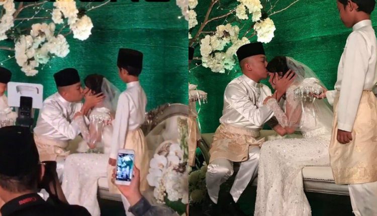 Foto tersebut jelas menunjukkan Nedim mengucup dibahagian mulut sambil memegang bahagian mukanya sejurus sejurus selesai majlis akad nikah semalam.